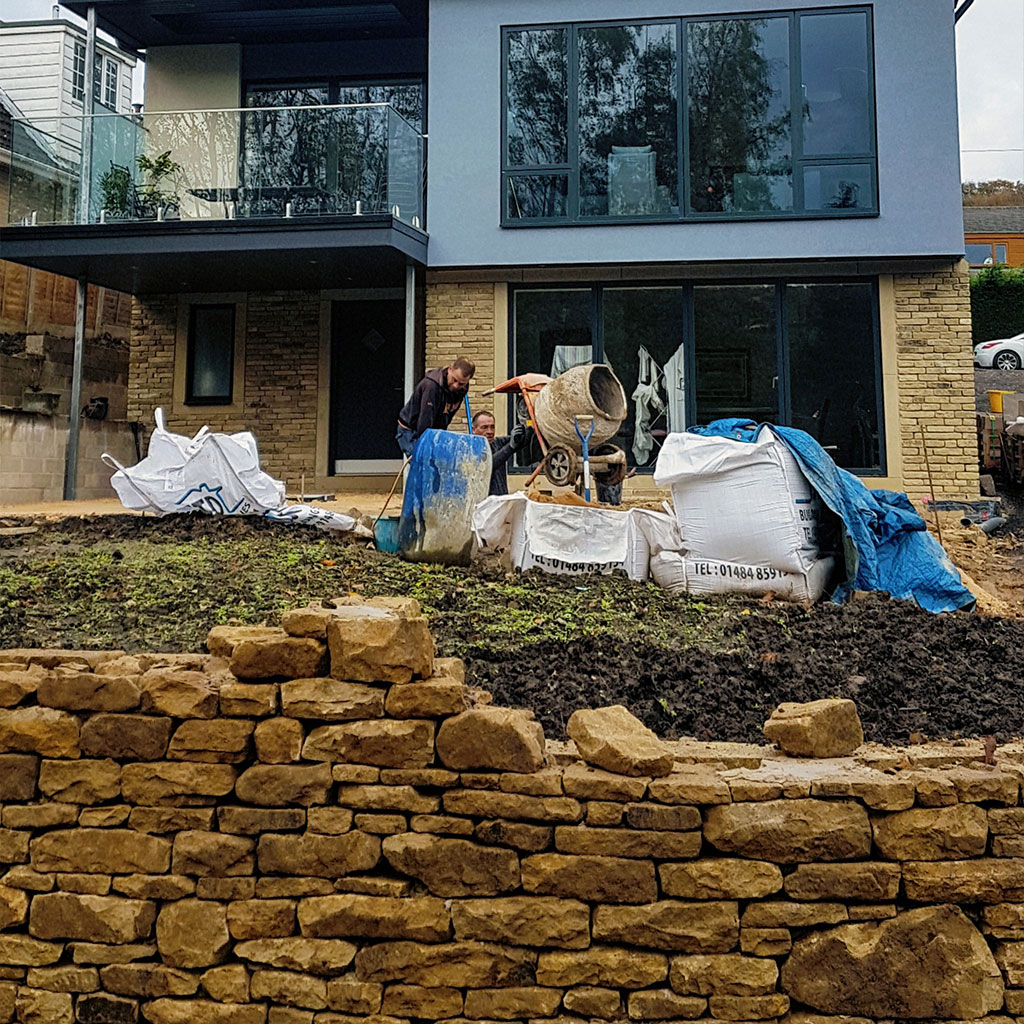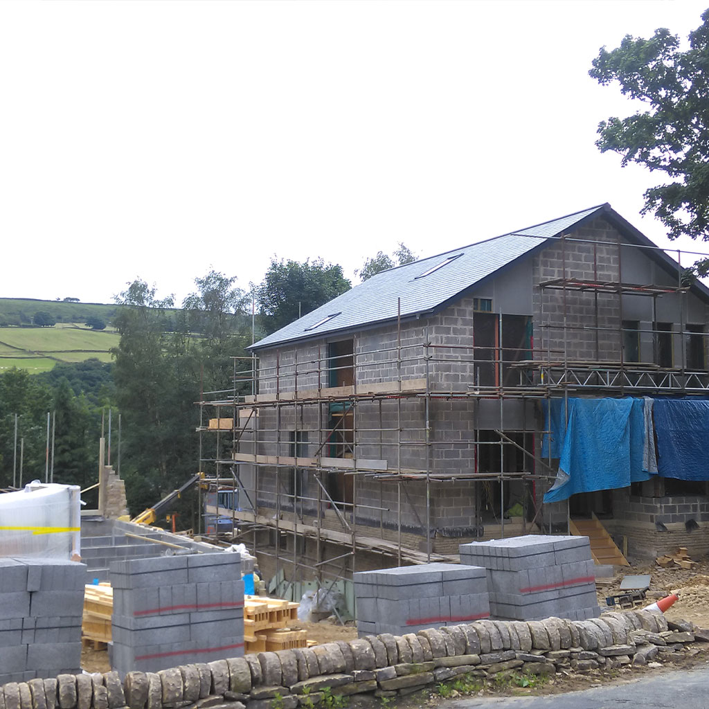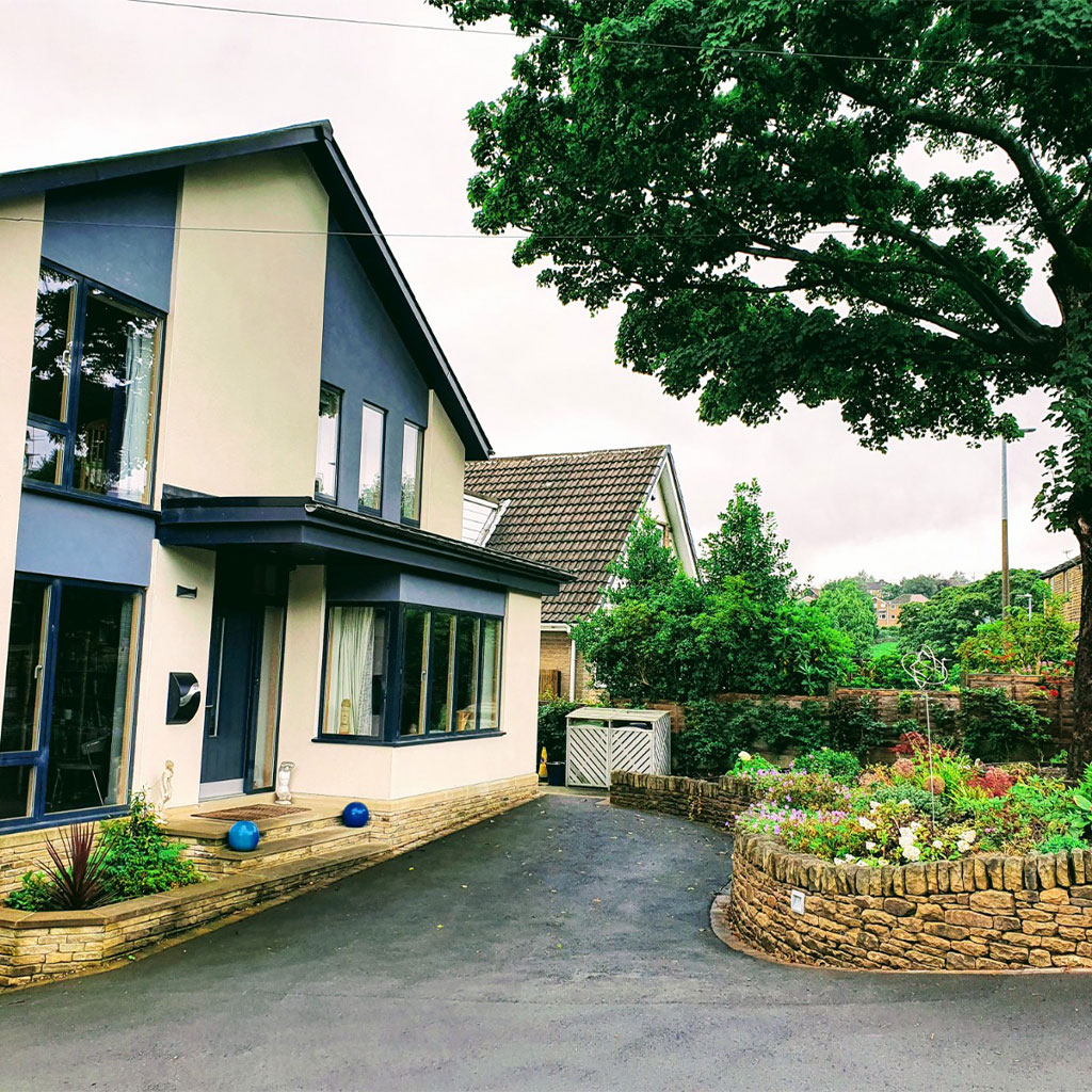 Plot B took a more modern approach, using a timber frame structure and having render and panelling to the fascade with larger areas of glazing, to the lower level the property was faced with a drystone wall appearance to complement the modern style of the design.